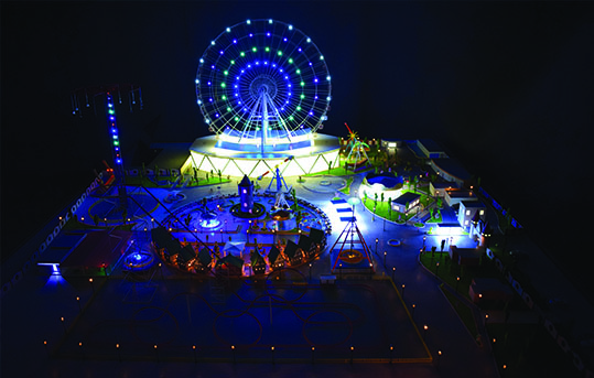 ماکت دارای سازه های مکانیکی واقعی و نورپردازی خیره کننده مینیاتوری می باشد